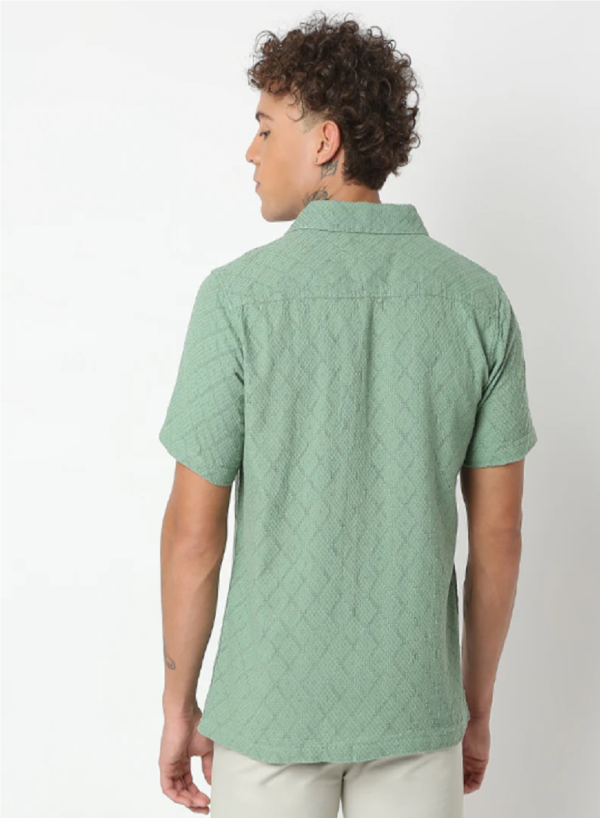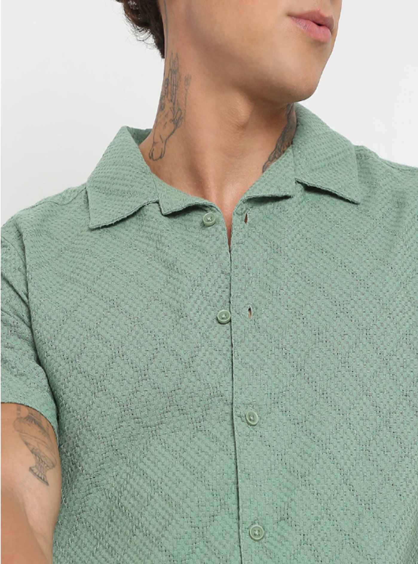 Regular fit solid shirt (cotton woven ). with camp collar
